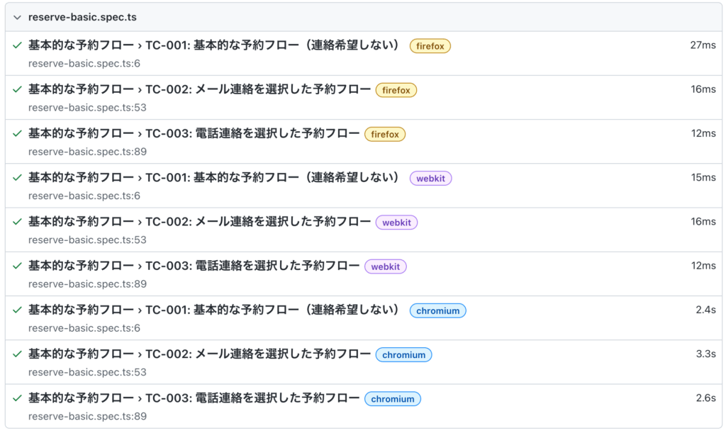 "firefox"と"webkit"のブラウザのテストが失敗しました。修正してください。